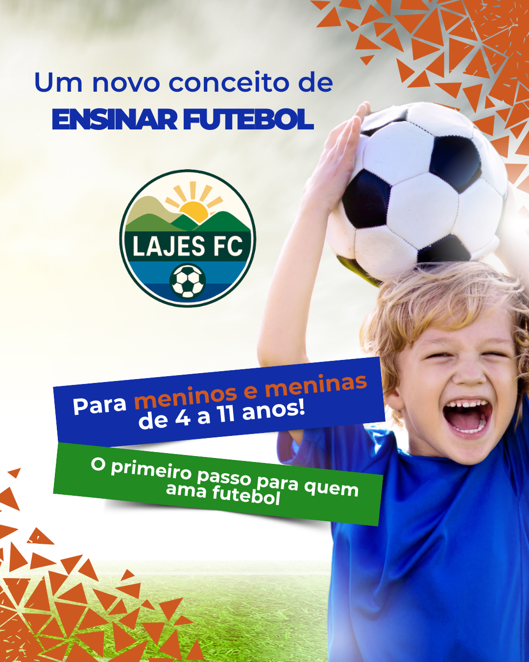 O Lajes FC é uma escola de futebol voltada ao desenvolvimento infantil, com treinos organizados por faixa etária, metodologia própria e foco em aprender jogando.