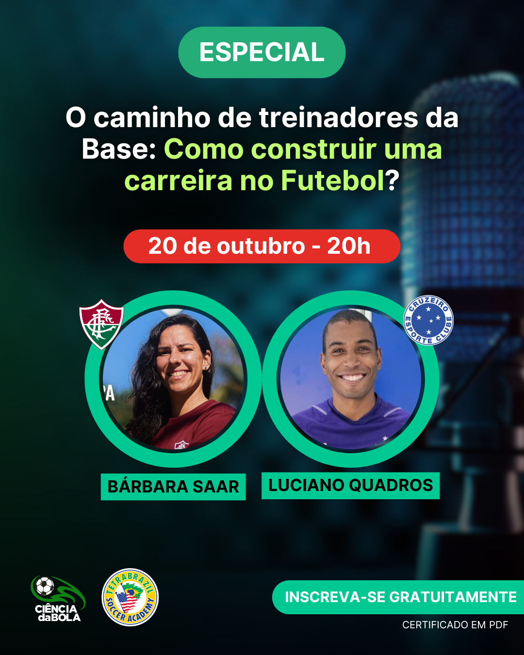 Teremos a participação de Bárbara Saar, treinadora do Fluminense sub-20 e Luciano Quadros, treinador das categorias de iniciação do Cruzeiro.